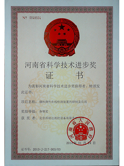 我公司自主研發(fā)的“煙絲彈性在線檢測裝置”獲得了河南省科學(xué)進(jìn)步三等獎