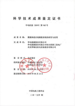 2019年6月12日,中國電機工程學(xué)會與中國動力工程學(xué)會聯(lián)合召開了該產(chǎn)品的項目鑒定會,鑒定委員會認(rèn)為:項目研發(fā)的新型燃煤熱值在線測量系統(tǒng),具備成本低、安全性高、運行可靠的特點,解決了火電廠燃煤熱值在線檢測的難題,為火電廠鍋爐燃燒控制和精細(xì)化管理提供了技術(shù)支撐,具有顯著的經(jīng)濟、社會效益和推廣應(yīng)用前景,居國際先進水平。