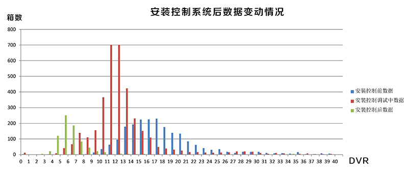 本儀器的控制性能滿足YC147/2010 8.3對(duì)卷煙煙箱DVR合格的要求,正常穩(wěn)定生產(chǎn)情況下合格煙箱(DVR小于10)占總煙箱的85%以上。