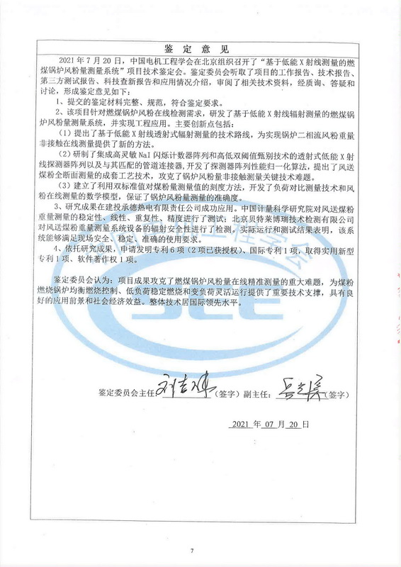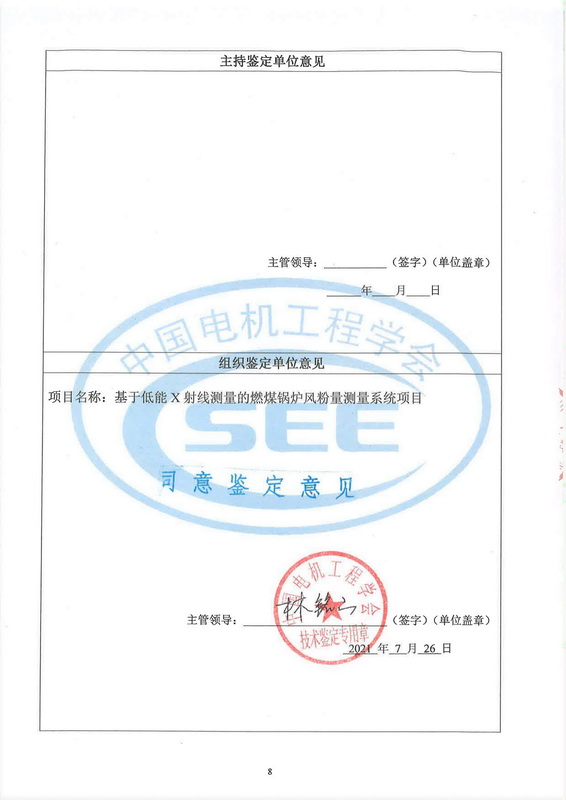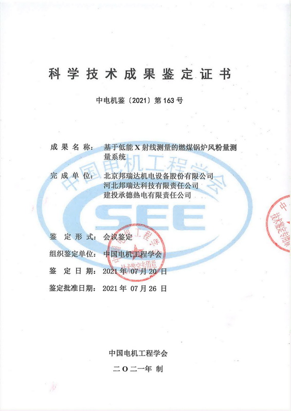 2021年7月20日,中國電機工程學(xué)會在北京組織召開了“基于低能X射線測量的燃煤鍋爐風粉量測量系統(tǒng)”項目技術(shù)鑒定會。
